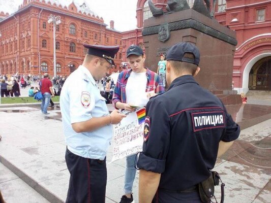 Радужные новости"Я - ВИЧ-положительный гей, я хочу жить" - вчера у стен Кремля прошел одиночный пикет
